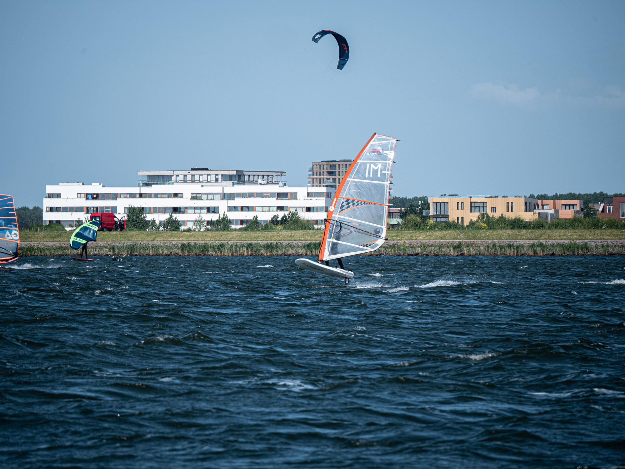 Vol enthousiasme en gezonde spanning vertrekken onze clubtrainers 1e pinksterdag richting Almere. De windverwachting is perfect met een voorspelling van 15 tot 20 knopen. We worden warm ontvangen door Marco Boone, eigenaar van Windfoilen.nl en olympisch IQFoilers Sil Hoekstra en Maria Belen Bazio.